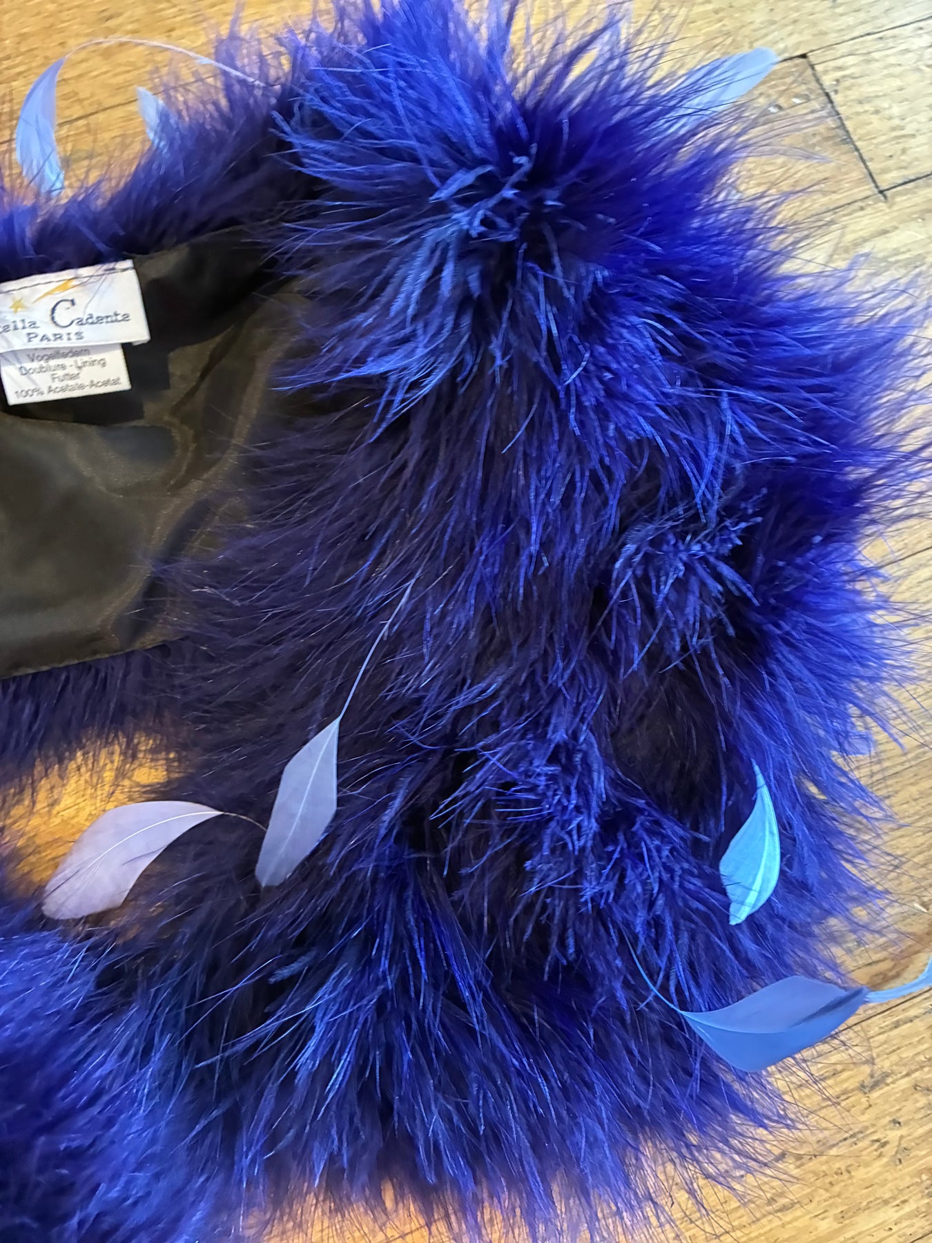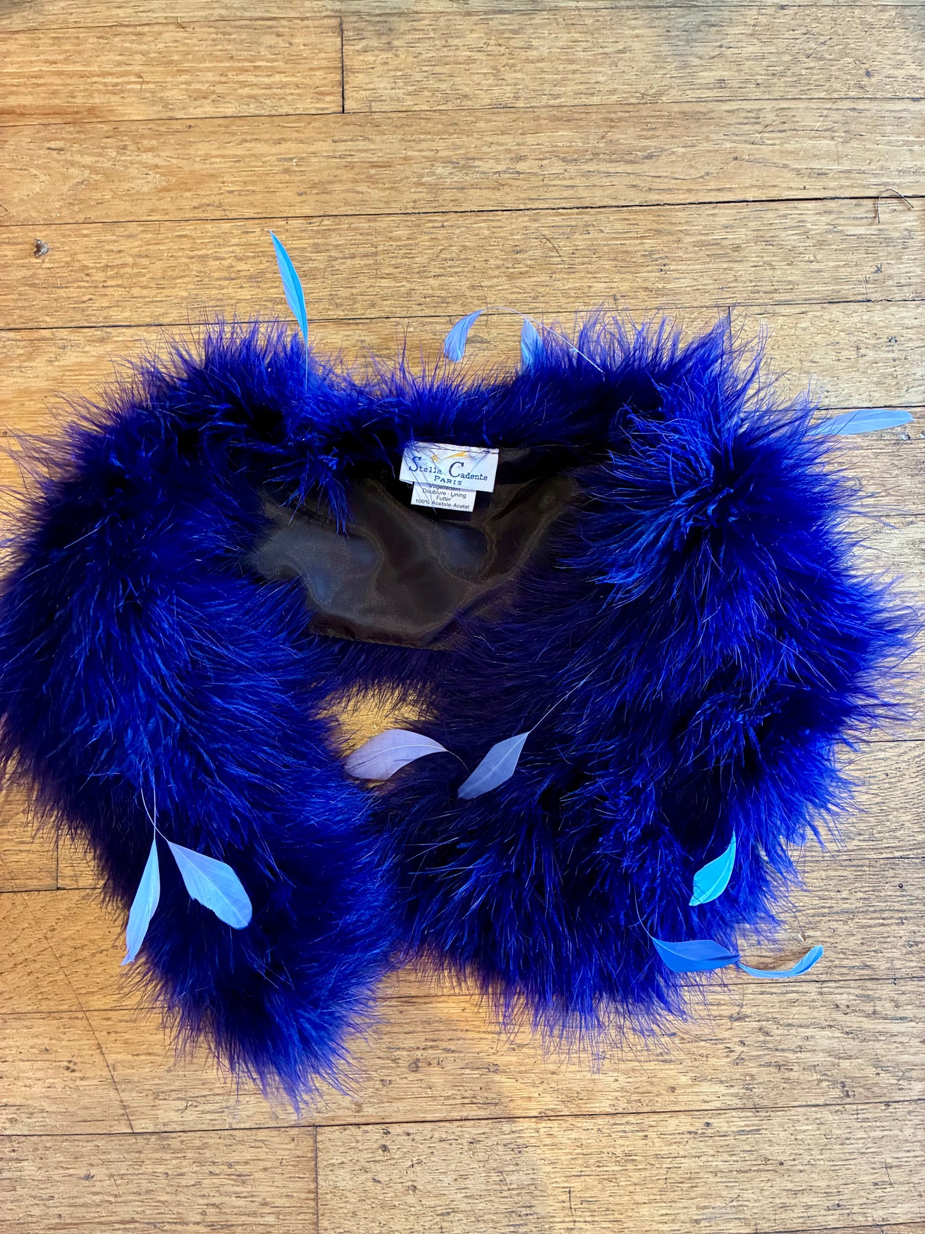 Lovely brilliant purple feather neck collar with individual feathers throughout by Stella Cadente of Paris