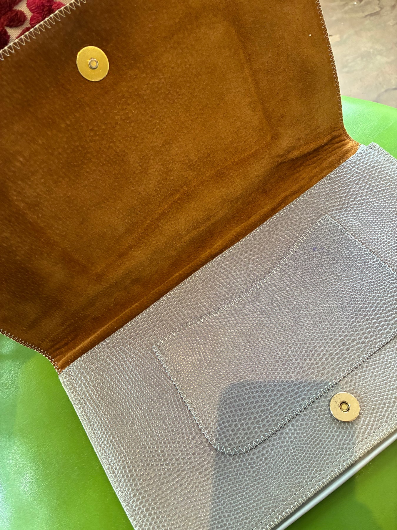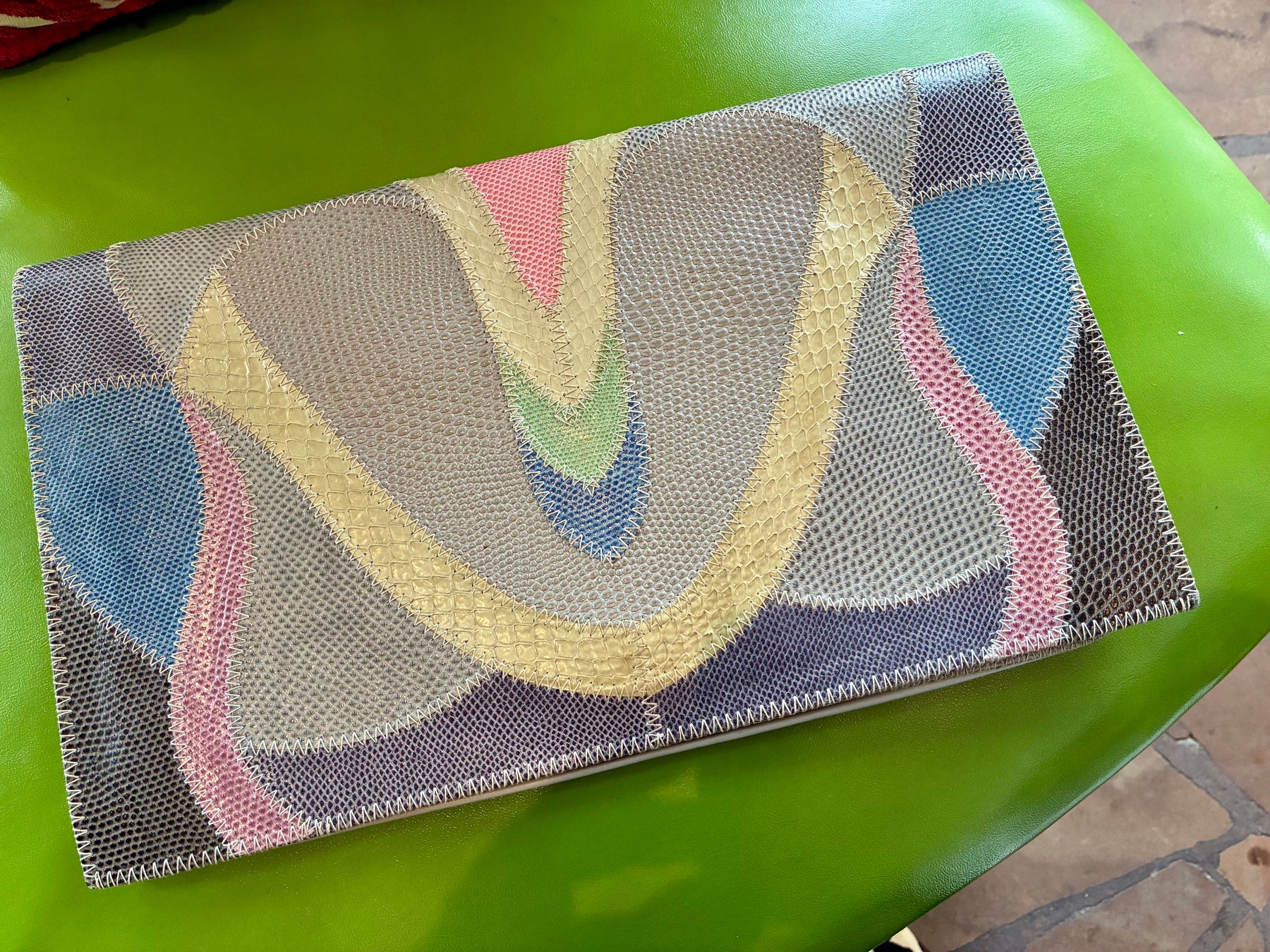 Adorable grey and pastel colored clutch bag by Furst & Mooney